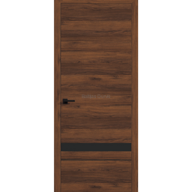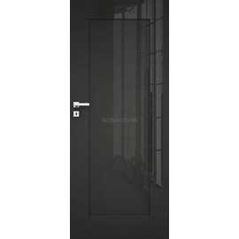 Iekšdurvis SOHO 2 SUPREME  melnā krāsā ar matētu stikla pildiņu un melniem dekoratīviem līstojuma elementiem.